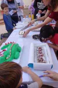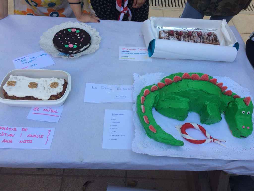 I és aixi com tots i totes van tornar contents al poblat i van poder gaudir d’un meravellós Concurs de pastissos* a càrrec de les famílies que vivien allà. Des de llavors, aquells visitants tornen cada dissabte al poblat amb ganes de jugar amb el drac. Si vosaltres també el voleu coneixer no dubteu en venir a l’esplai Sant Jordi, et sorprendrà!